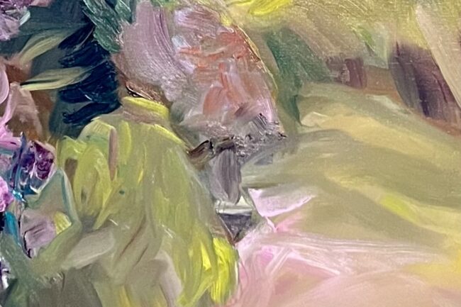 “ Je peins pour capter l’essence du réel, au-delà de l’apparence, dans un dialogue entre la matière et le regard. Travaillant d’après modèle vivant ou sur le motif, je laisse la présence guider le geste avant que lumière, textures et contrastes ne transforment l’image en une expérience vibratoire. Les couches se superposent, les frottages et déplacements de matière font surgir le sujet, sans préméditation. Ma peinture s’inscrit dans cette approche que j’appelle sensualisme : privilégier le sensible, laisser la matière parler. À travers elle, j’explore le silence intérieur face au tumulte du monde, dans une quête d’authenticité et de lien avec l’essentiel “