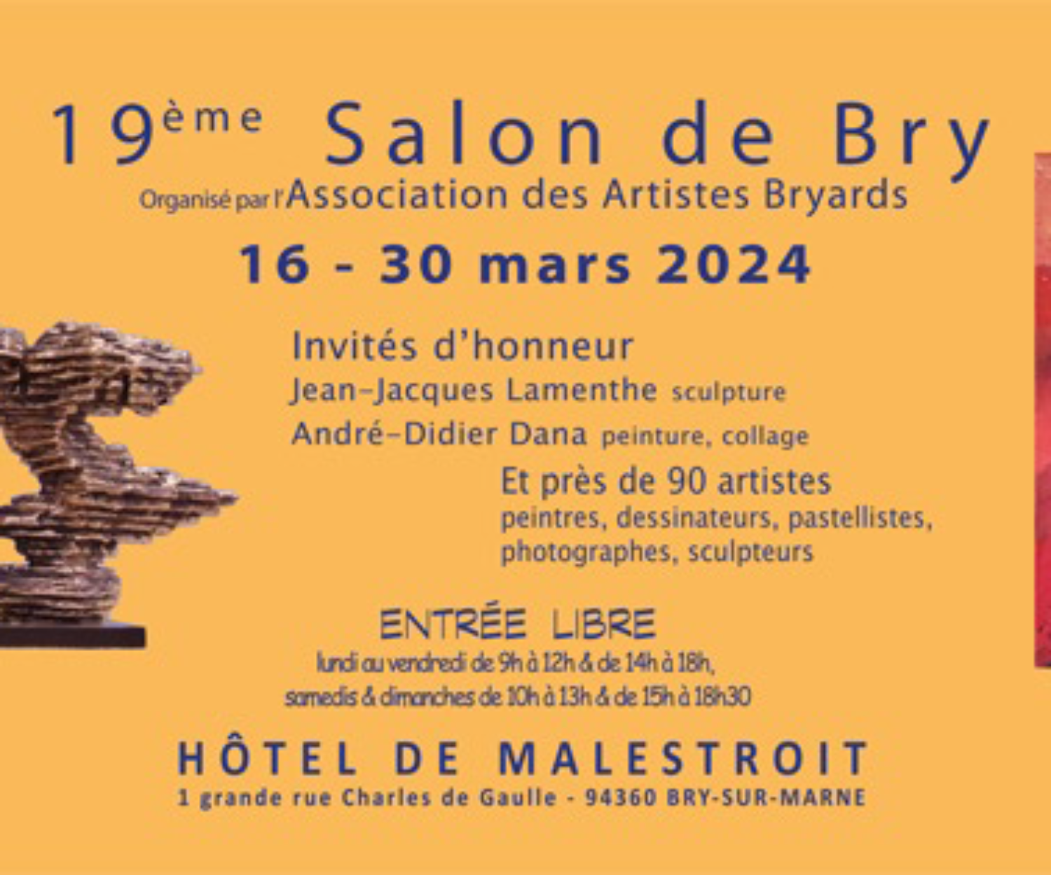 ACTUALITÉS 17 Mar 2024 EXPO – SALON DE BRY – Hotel de Malestroit Le 19ème Salon de Bry du 16 au 30 mars - Bienvenue à la 19ème édition ! J’expose dans… mubozzia122021